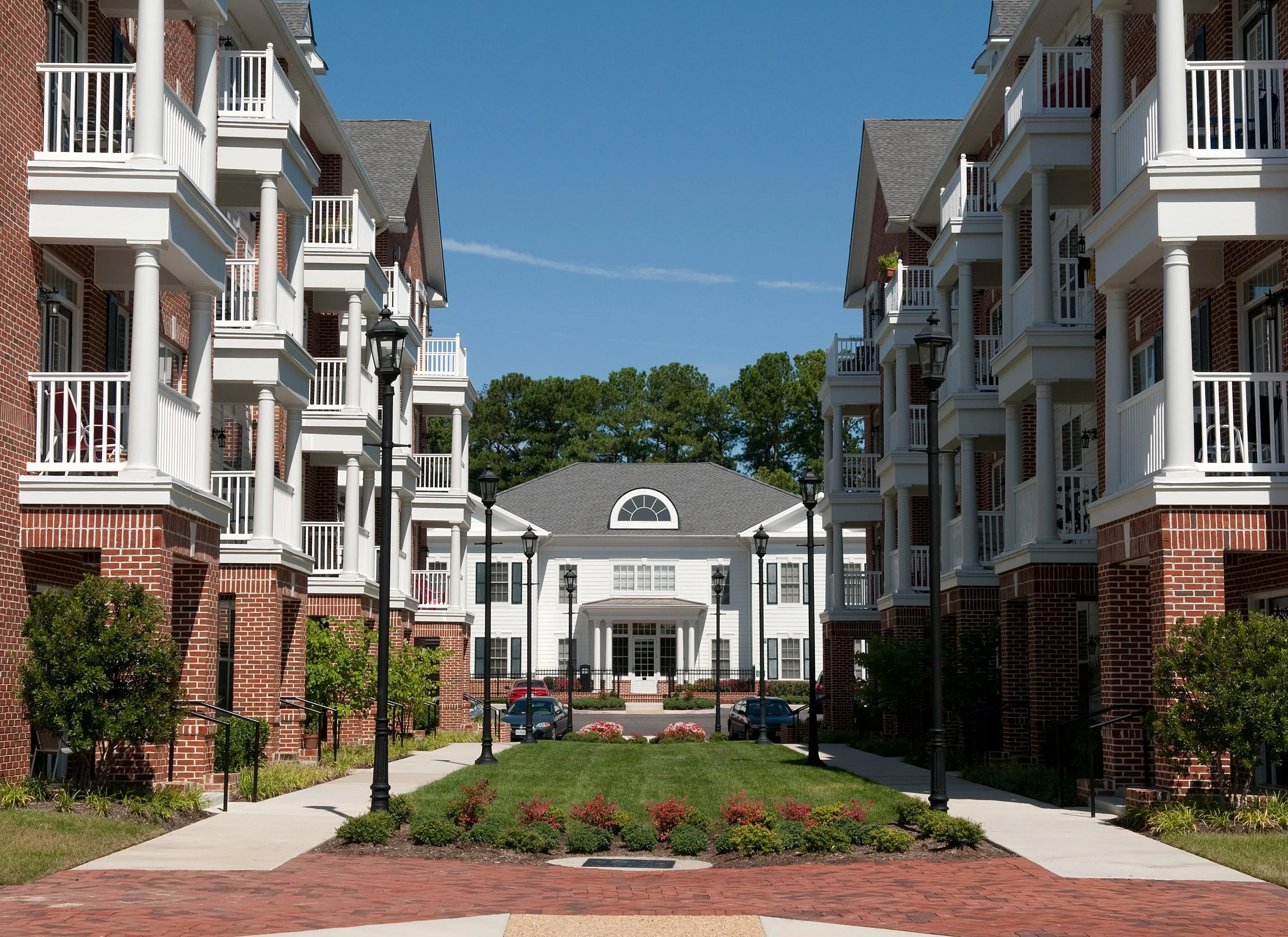 Sterling Manor Apartments is a 191-unit residential community located in Williamsburg within the High Street district. The property includes 43 private garages and a centrally positioned clubhouse that serves as the social and amenity hub of the community.The community is comprised of three- and four-story, elevator-served buildings featuring central corridors and dual stairwells, offering both convenience and accessibility. Thoughtfully designed and carefully maintained, Sterling Manor has consistently achieved some of the highest rental rates among comparable grade-parked apartment communities in the Hampton Roads market.Each apartment home is appointed with premium finishes and modern features, including nine-foot ceilings, expansive windows that provide abundant natural light, surround sound capability, advanced technology and communication wiring, in-unit washers and dryers, stainless steel appliances, and integrated security systems. The residences combine functionality with upscale design to create a refined living experience.Architecturally, the community features high-quality exterior materials such as wood-mold brick and HardiePlank siding. Rich detailing, varied textures, and cohesive building design contribute to a distinctive and timeless streetscape presence.Sterling Manor has established itself as one of Williamsburg’s leading luxury apartment communities, maintaining strong rental performance and consistently high occupancy, including periods of full stabilization.